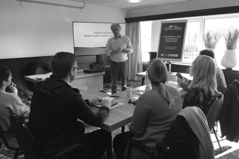 In mijn trainingen gebruik ik theorie en handige werkmodellen. Maar die staan altijd ten dienste van de praktijk. In mijn opvatting en aanpak staan mijn persoonlijke langjarige ervaring, gespiegeld aan die van de cursisten, centraal. Oefeningen nemen daar een belangrijke plaats in. Ook zet ik regelmatig gasten uit de praktijk in, vaak met een schat aan ervaringen waar je direct van kunt profiteren. Een actieve en interactieve houding van jou al cursist is daarbij onontbeerlijk. Zo wordt het niet alleen een leerzame training, maar kun je de opgedane kennis onmiddellijk in de praktijk brengen.